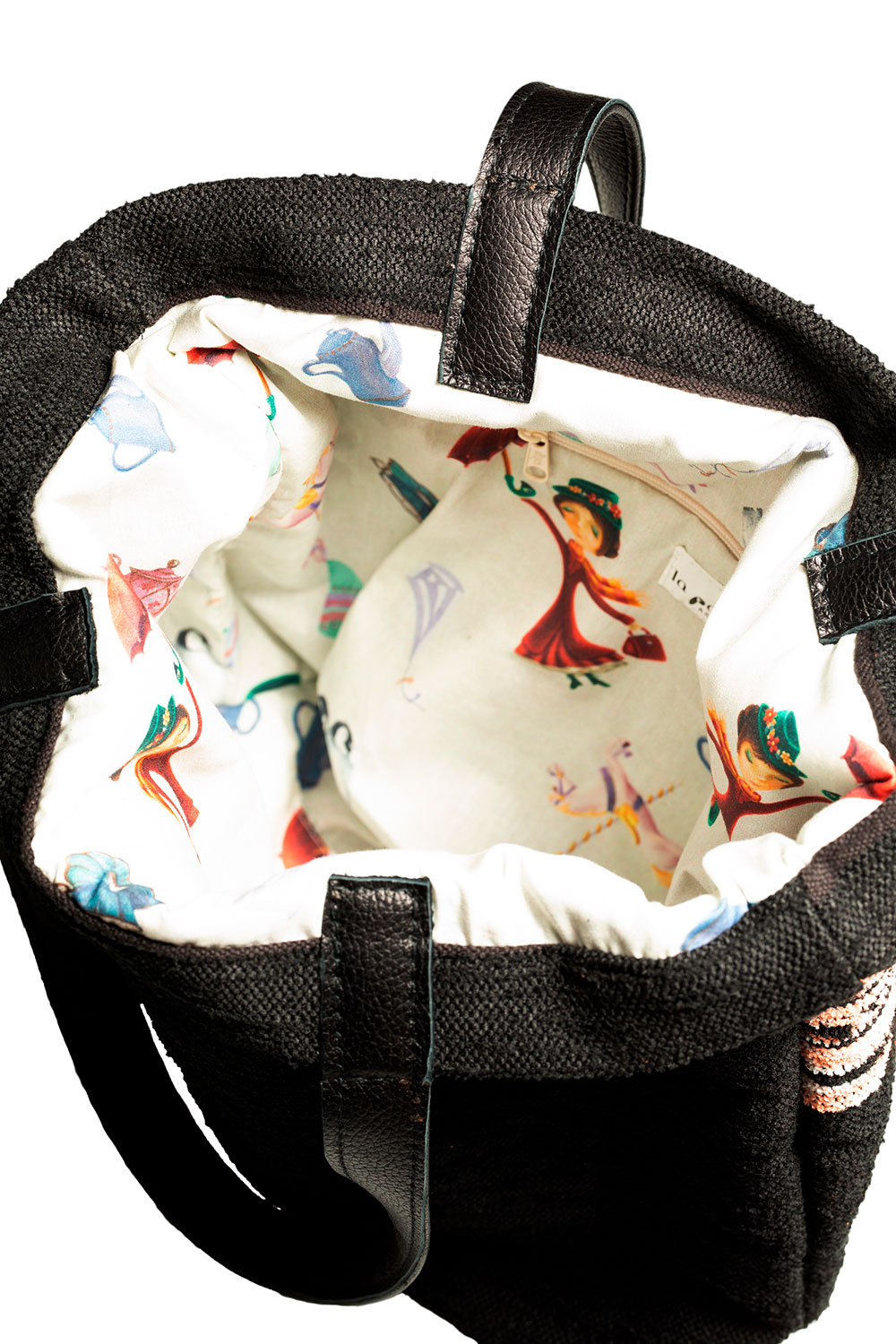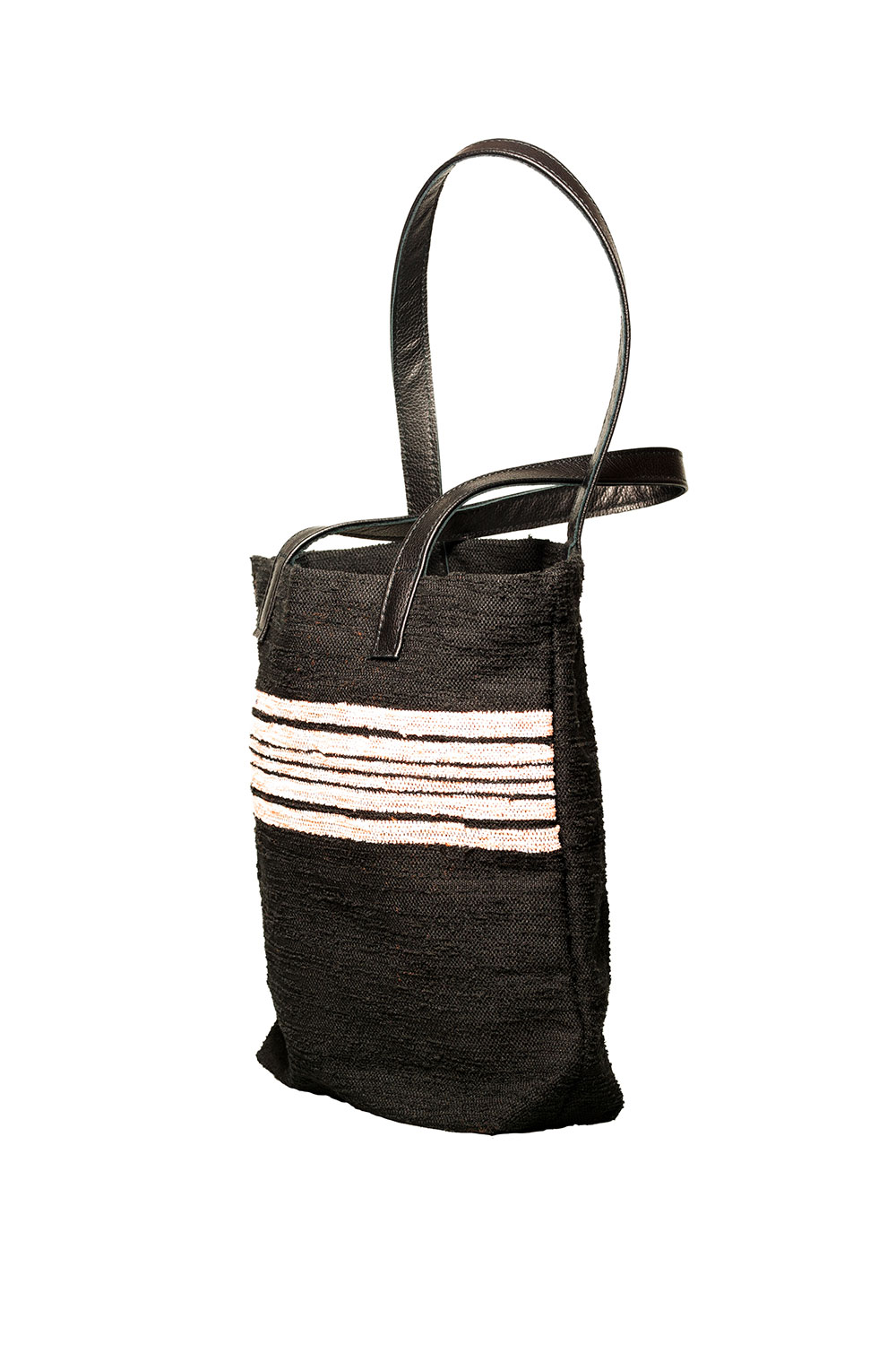 Bag made of trapera, with leather handles.