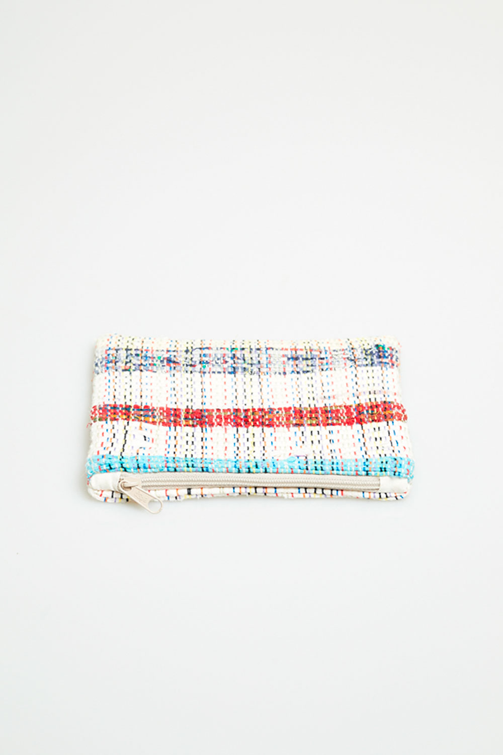 Carterita pequeña de trapera, tejida en telar tradicional con diferentes colores. Medidas 14,5 cm de largo y 11cm de alto, cierre con cremallera beige y forrada en tejido de algodón por dentro