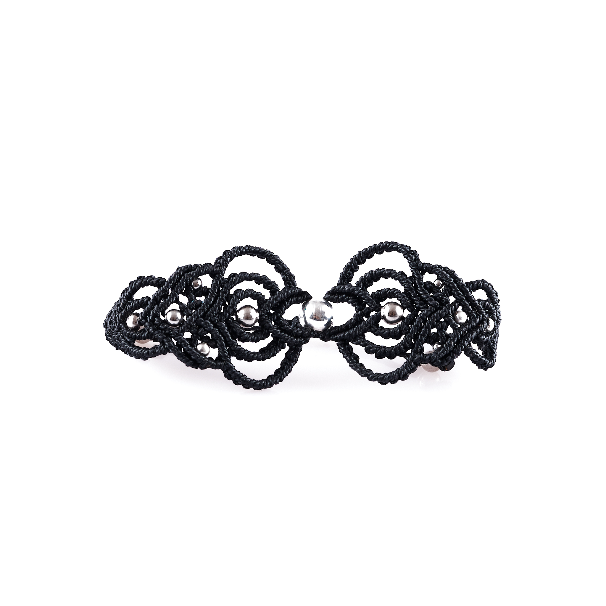 Pulsera elaborada con hilos de algodón y con accesorios en metal.